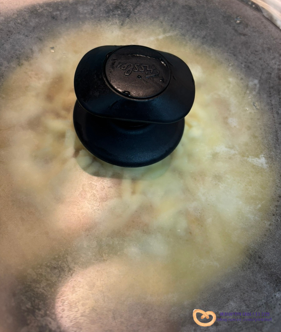약불로 줄여서 뚜껑 덮고 치즈를 녹여줍니다.