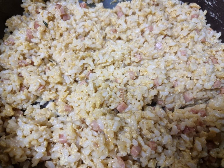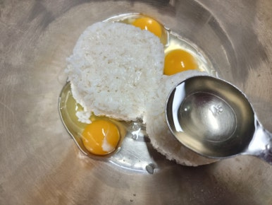 달걀 3개, 밥 2공기, 맛술 1큰술, 굴 소스 1과 1/2큰술