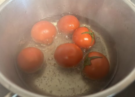 시금치도 건져 내고 후라이팬에 올리브오일 넉넉하게 두르고 썰어 놓은 토마토를 넣고 볶아 주세요.