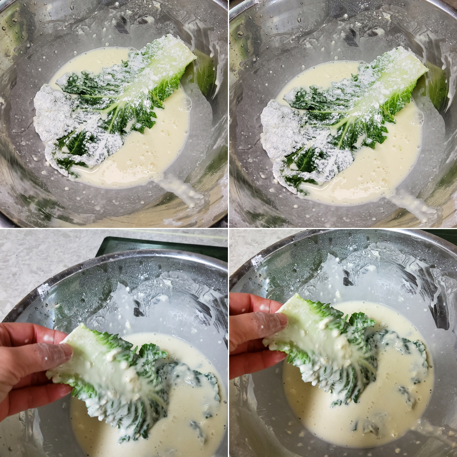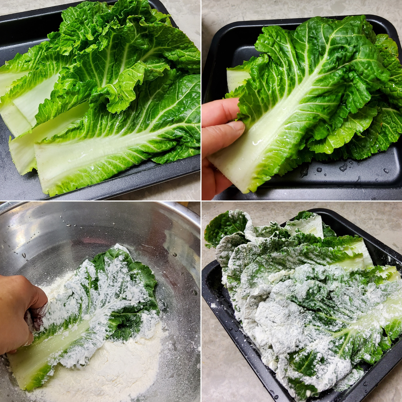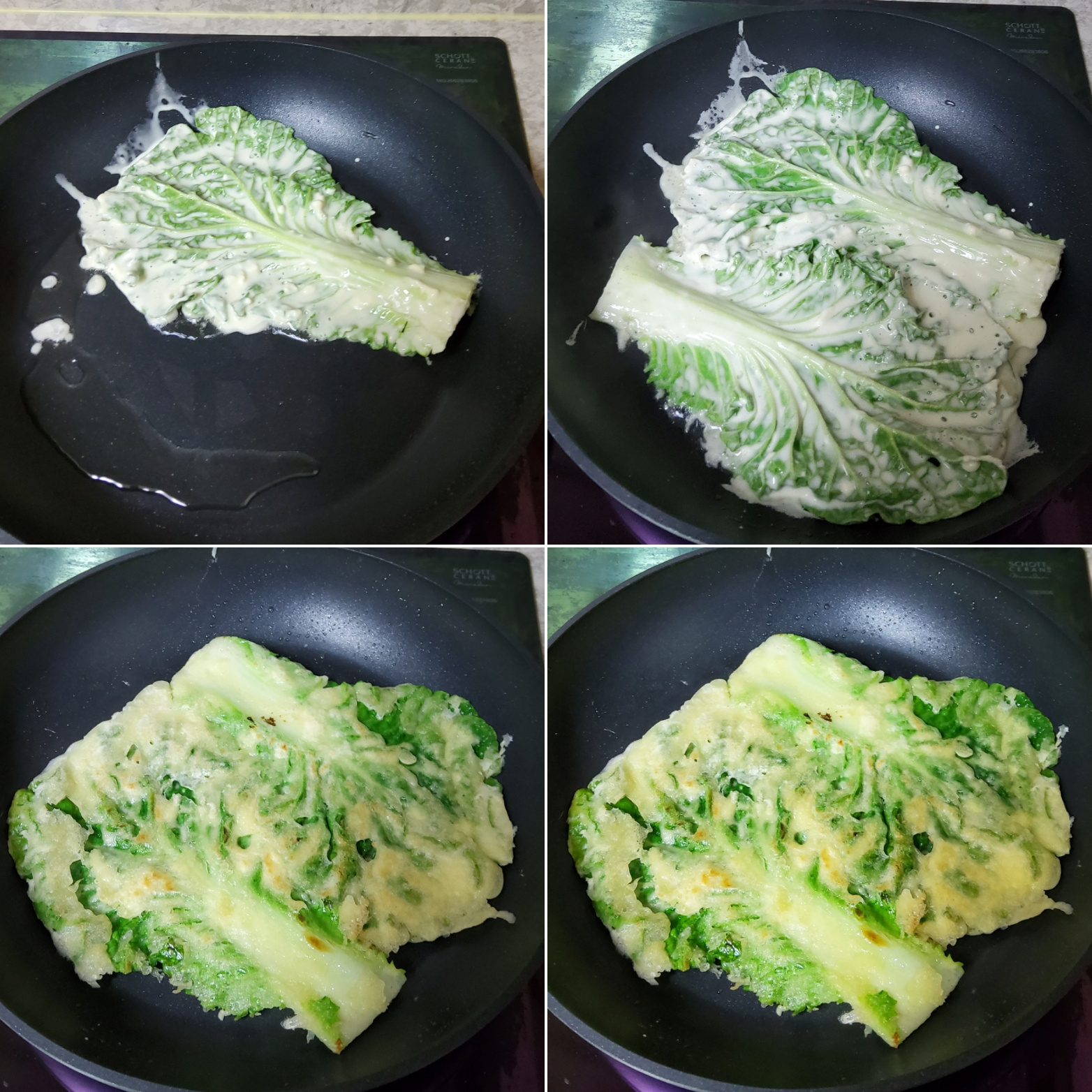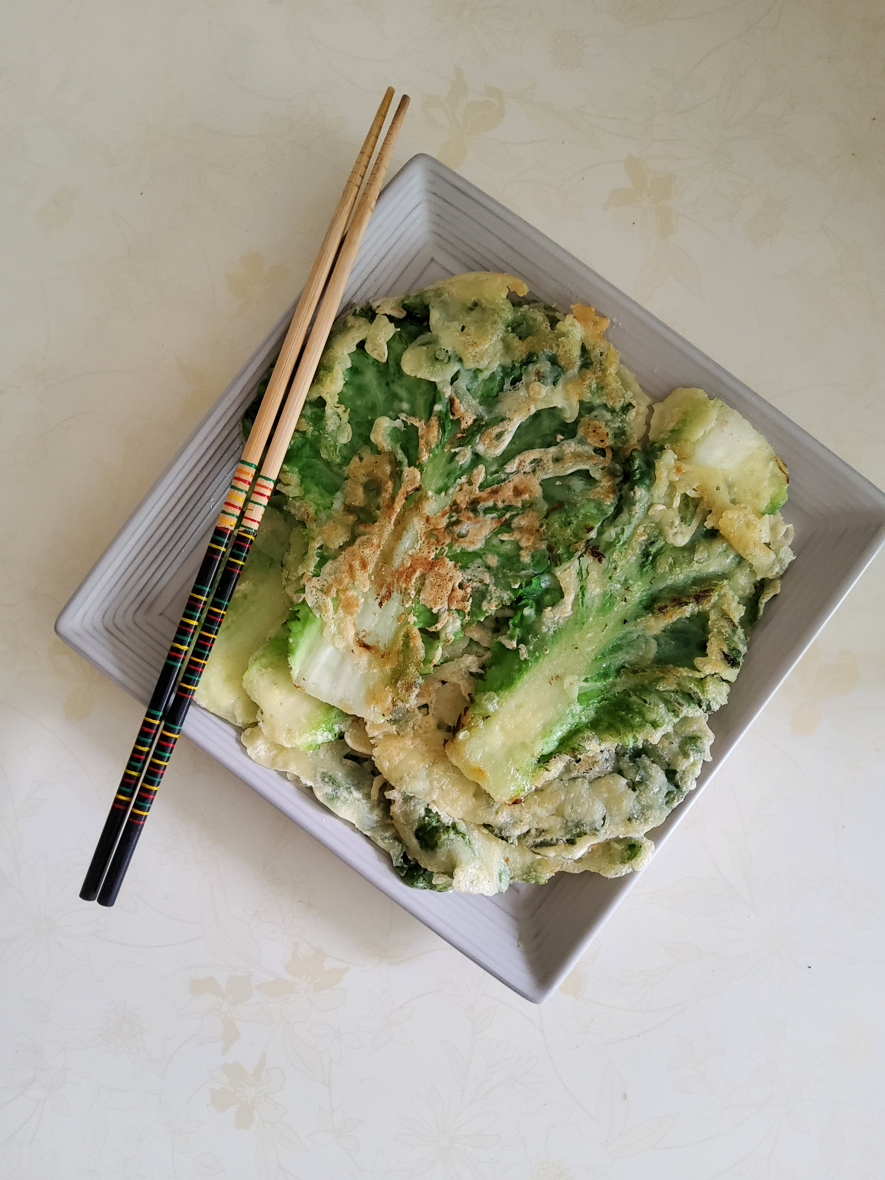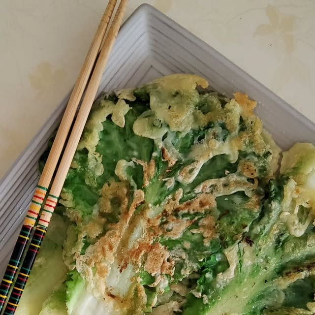 봄동전을 소개합니다. 봄동을 깨끗하게 흐르는 물에 씻어준 후 물기를 모두 빼주세요. 밀가루를 양면에 모두 묻혀주고 덮어주세요. 오늘은 밀가루도 좋지만 튀김가루로 조금은 건강한 밀가루를 선택했습니다. 후라이팬에 기름을 두른 후 봄동을 올려주세요. 앞뒤로 노릇노릇하게 부쳐주세요. 양념장과 함께 곁들여서 드시면 너무 좋은 봄동전입니다.