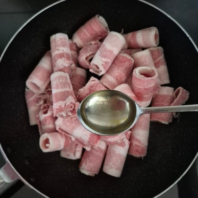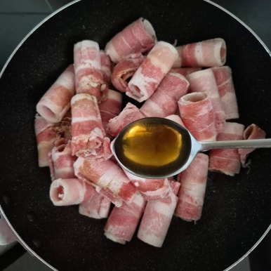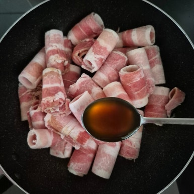 참기름 1큰술, 대패삼겹살 300g, 맛술 1큰술, 매실액 1큰술, 쯔유 1큰술, 참치액 1큰술, 간장 1큰술, 소금 약간, 후춧가루 약간