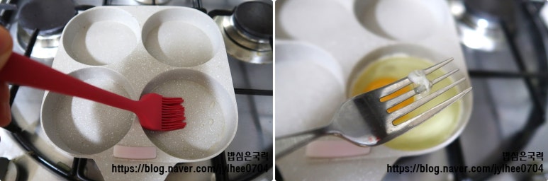 바르고 계란 후라이를 해요.
