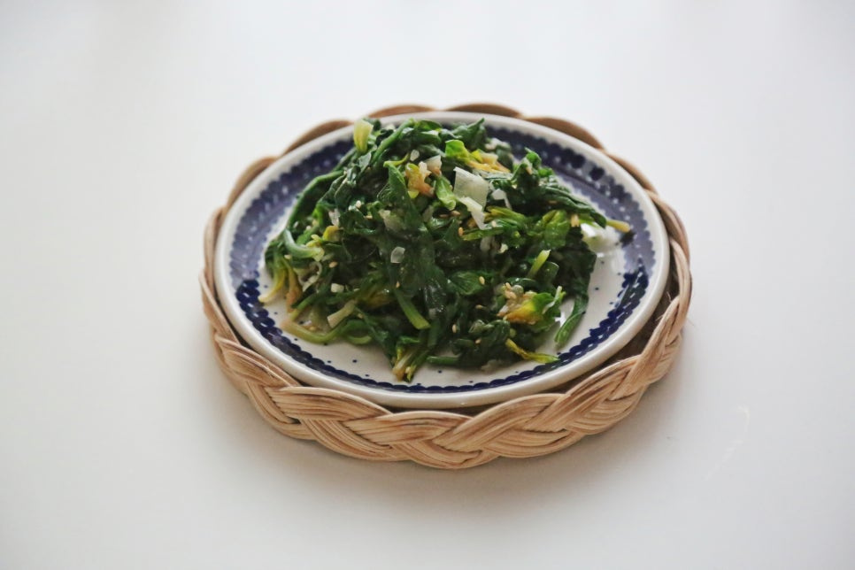 섬초는 데치는 과정이 중요하다 너무 익혀도 섬초잎이 물러 식감이 사라진다