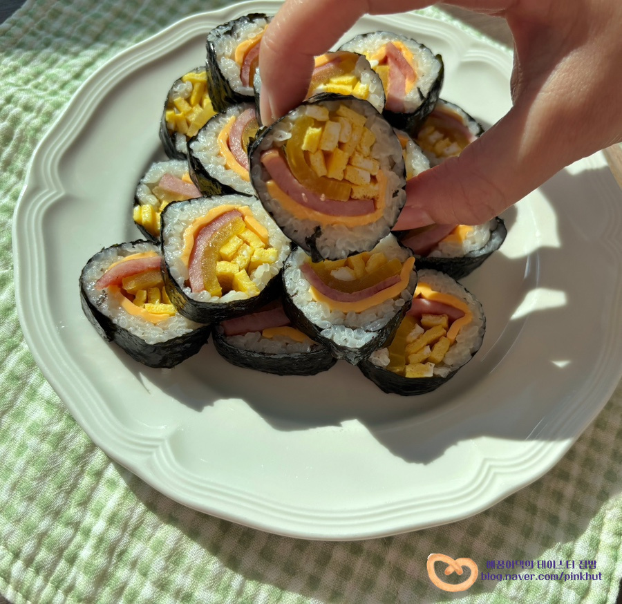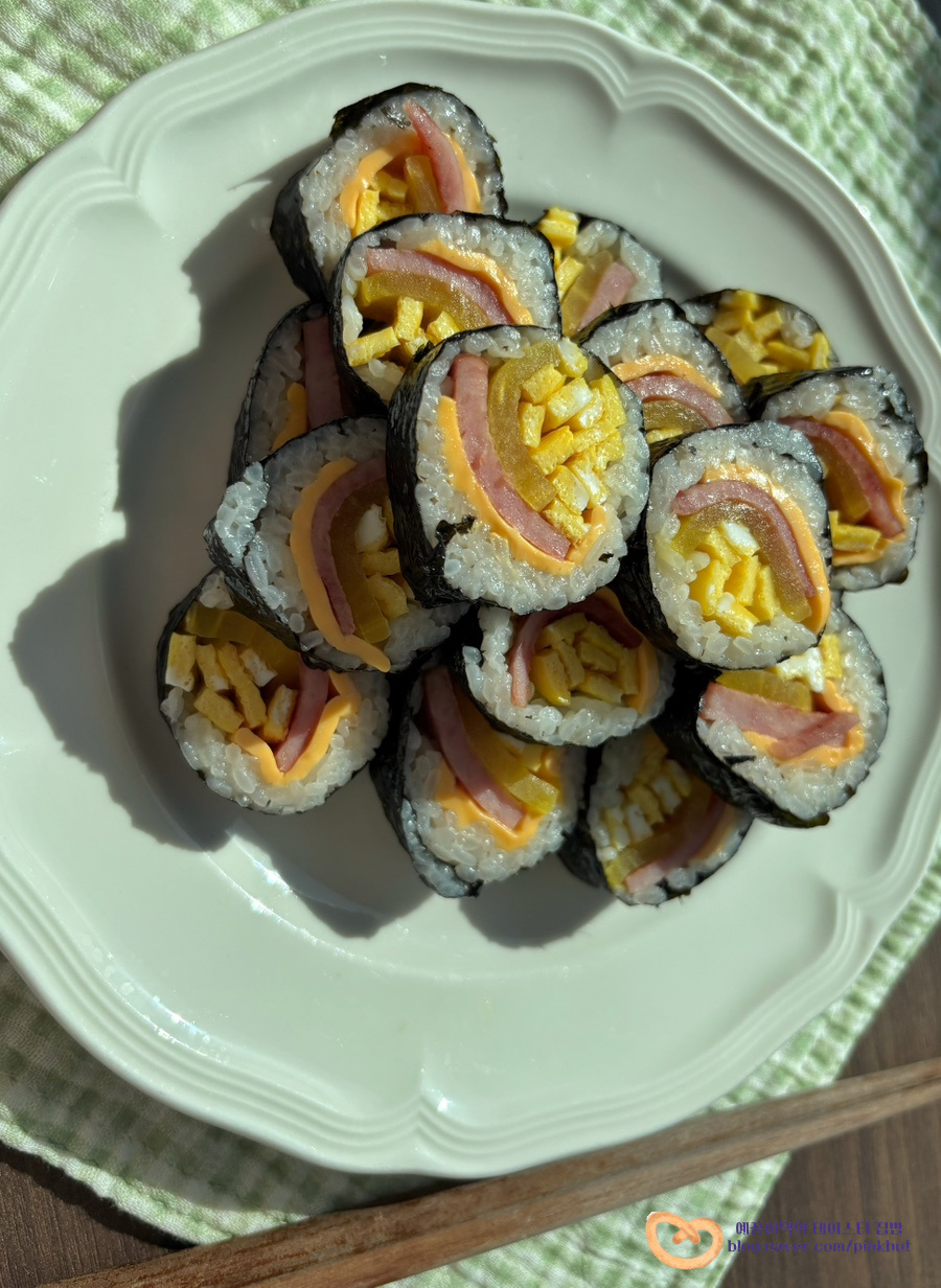 * 김밥 1줄에 김밥햄 슬라이스한 것 1장 반씩 사용했고요, 얇은 샌드위치햄의 경우 2장 사용하셔도 좋을 것 같아요.