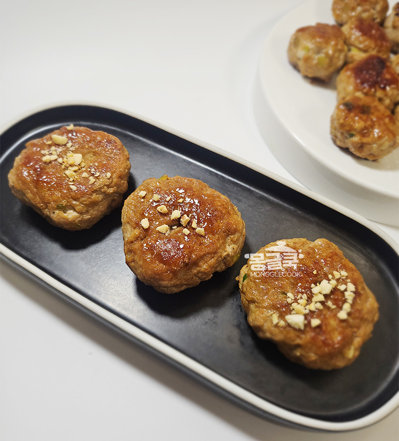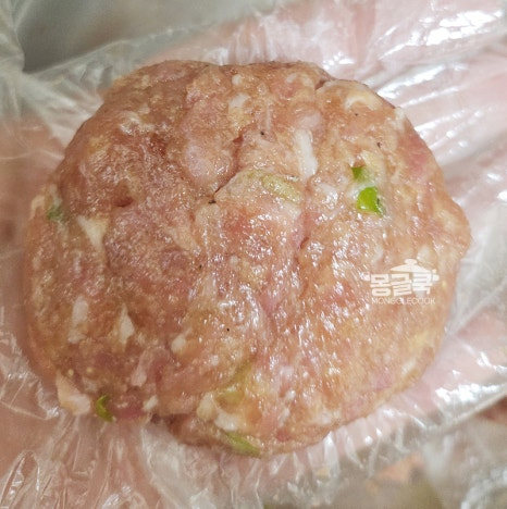 끈적한 찰기가 생겨야 구울 때 갈라지지 않고 육즙이 보존돼요.