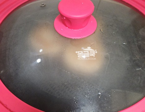뒤집은 후에는 약불로 줄이고 뚜껑을 덮어 3~4분 정도 속까지 증기로 익혀주세요