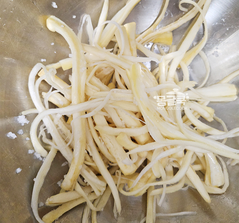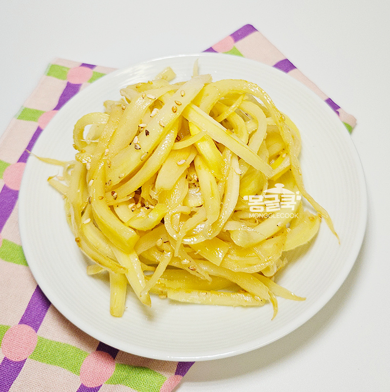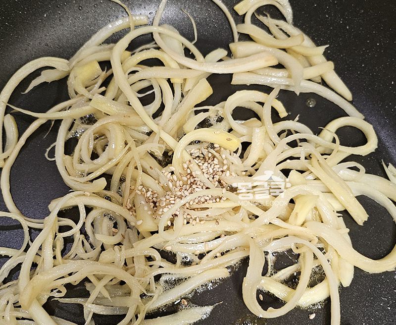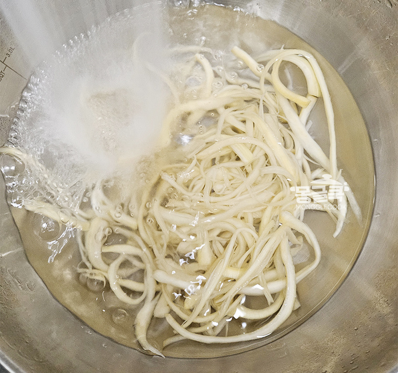 들기름은 불을 끈 뒤 넣어야 하얀 색감과 고소한 향이 살아나요.