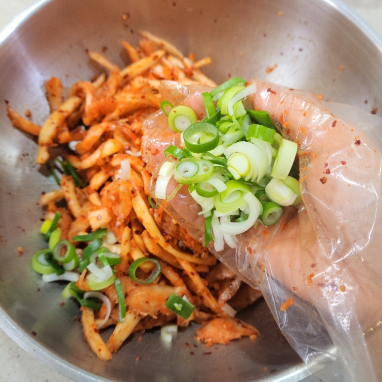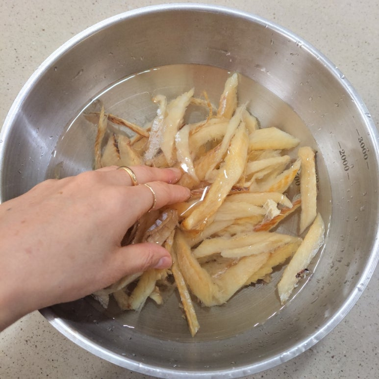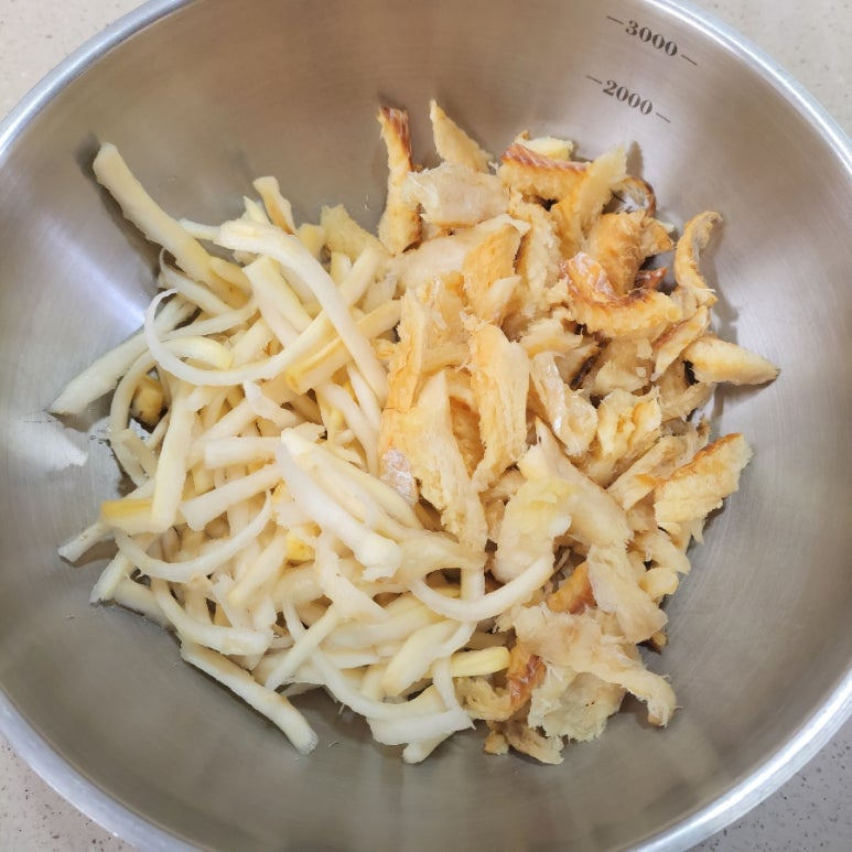 - 황태채 100 g , 깐 도라지 170 g , 대파 50 g