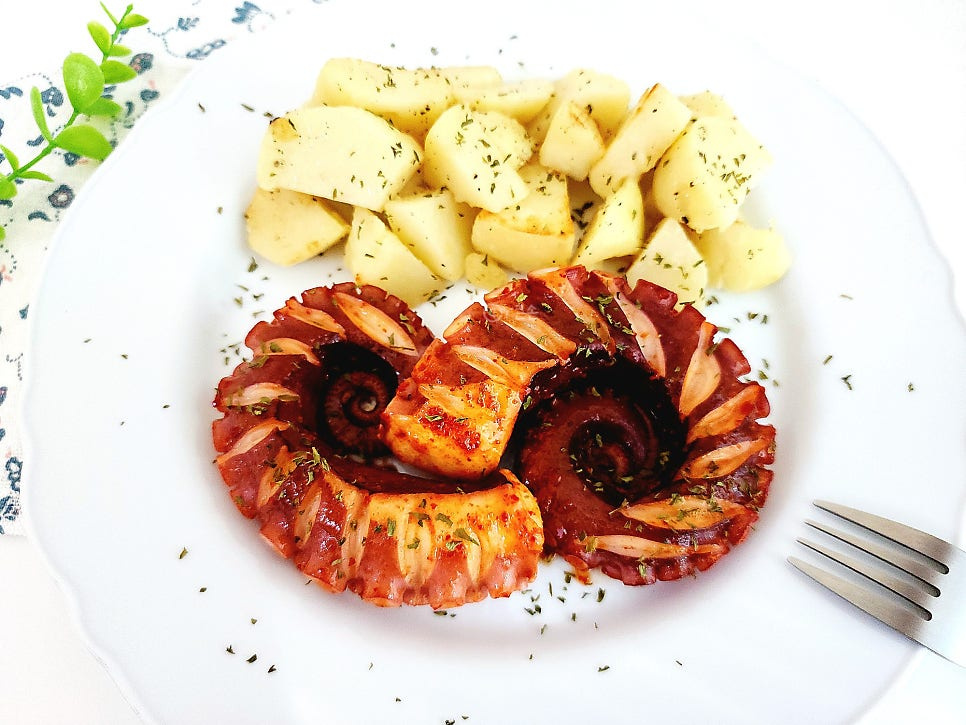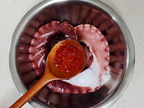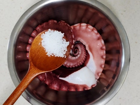 올리브유는 문어를 익힐 때 부드럽게 보호하는 역할을 해준답니다.