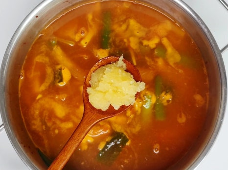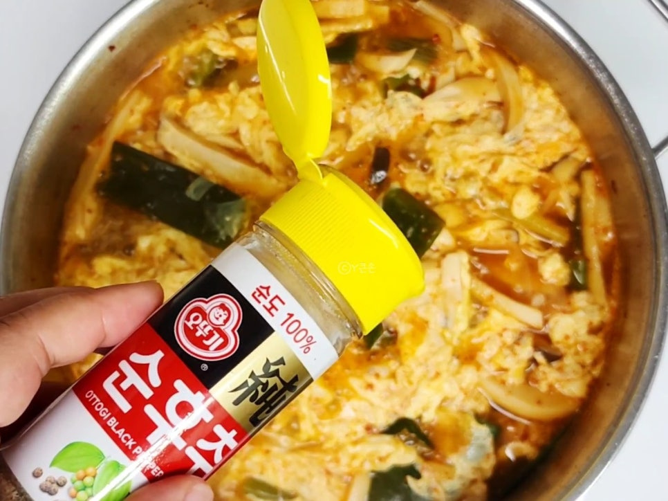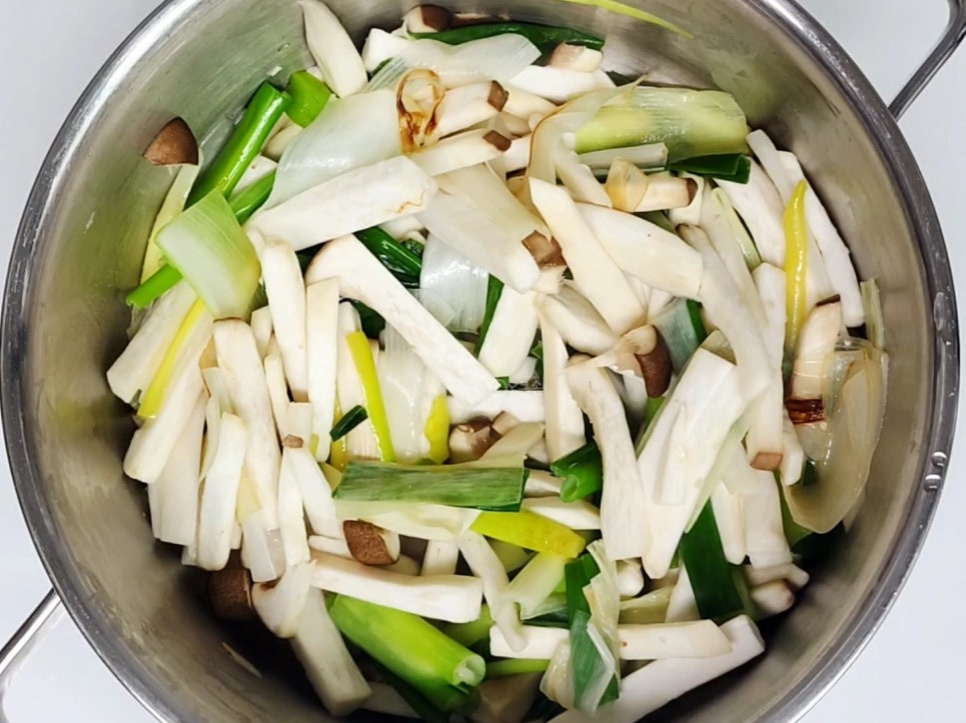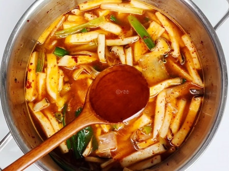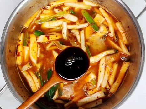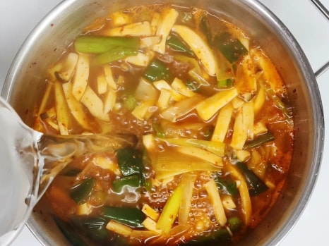 육수를 일부만 넣고 끓인 후 나머지 육수를 넣어 끓이면 짧은 시간에도 진한 국물이 된답니다.