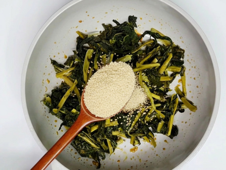 시래기나물볶음은 오래 볶지 않기 때문에 미리 양념해두는 과정이 정말 중요해요.