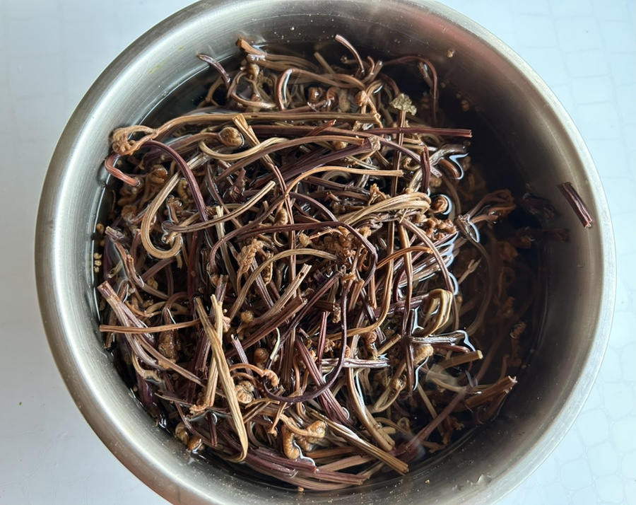 고사리처럼 마른 묵나물은 물기가 없으니 나물 요리를 할 때 육수를 충분히 넣어 자작하고 촉촉하게 볶아 주어야 맛있어요.