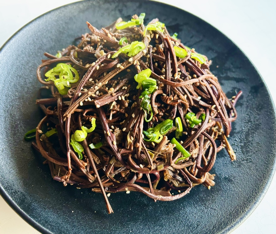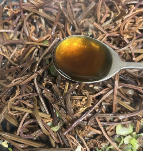 시중에서 파는 불린 고사리는 부드럽긴 하지만 미끄덩한 느낌도 있어서 저는 약간 꼬들한 고사리가 더 맛있더라구요. 의도한 건 아니지만 취향저격이었어요.