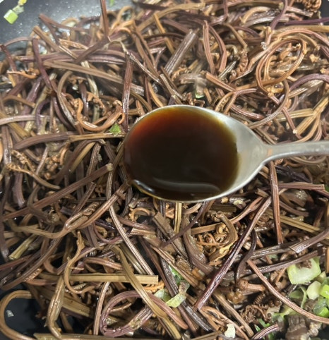 육수는 미리 소고기 육수를 사용하거나 장조림이나 산적 구이 양념이나 고기를 같이 넣어 주거나 더 간편하게 하려면 소고기를 다져 볶아 주다가 고사리와 물을 부어 볶아 주어도 되요.