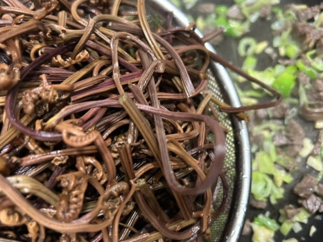 바싹 말랐던 고사리를 집에서 직접 불리고 데치고 볶으면 너무 퍼지거나 곤죽이 되지 않고
