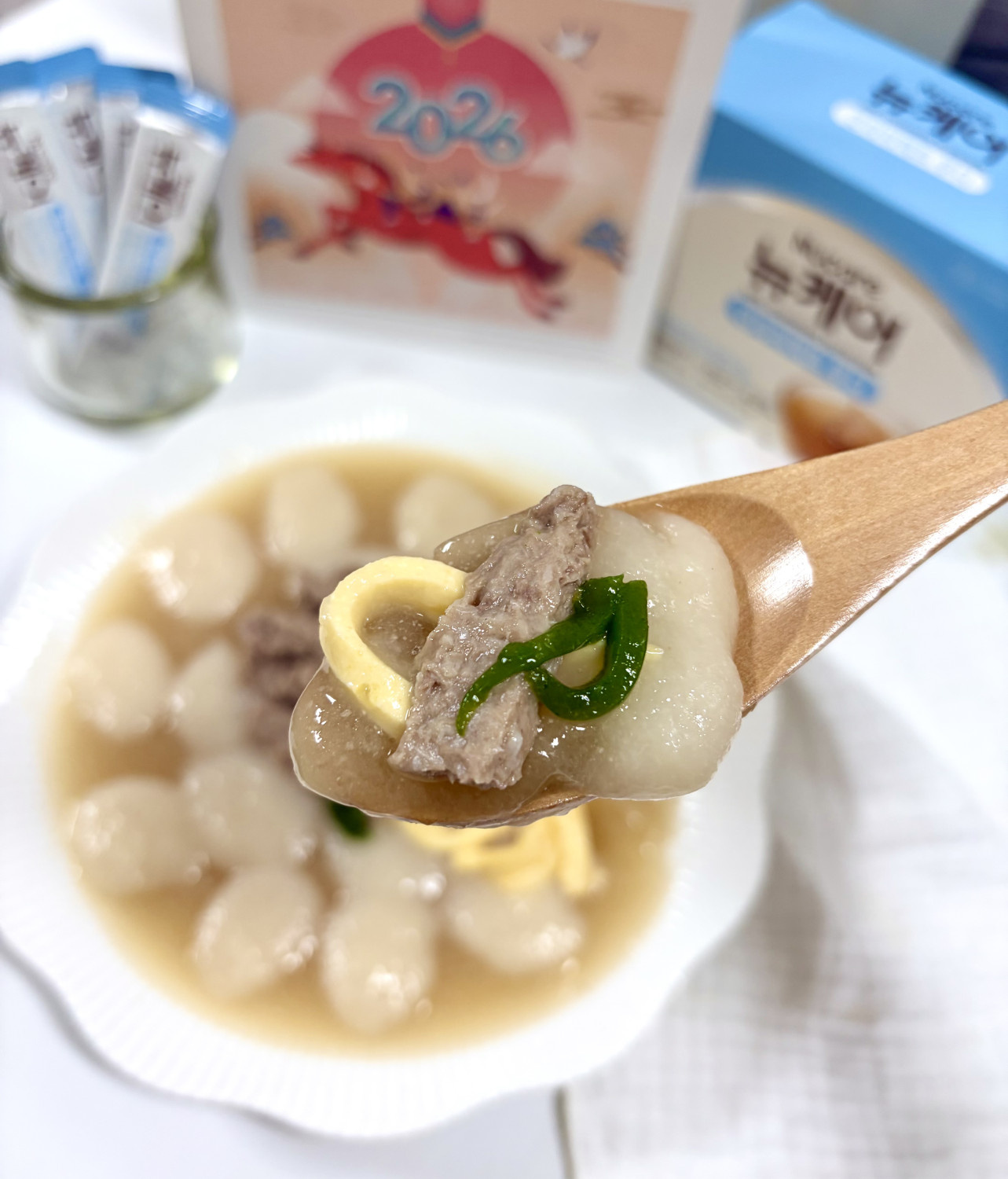 숟가락으로 무떡을 동그렇게 더듬어주면 더 먹음직스러워요!