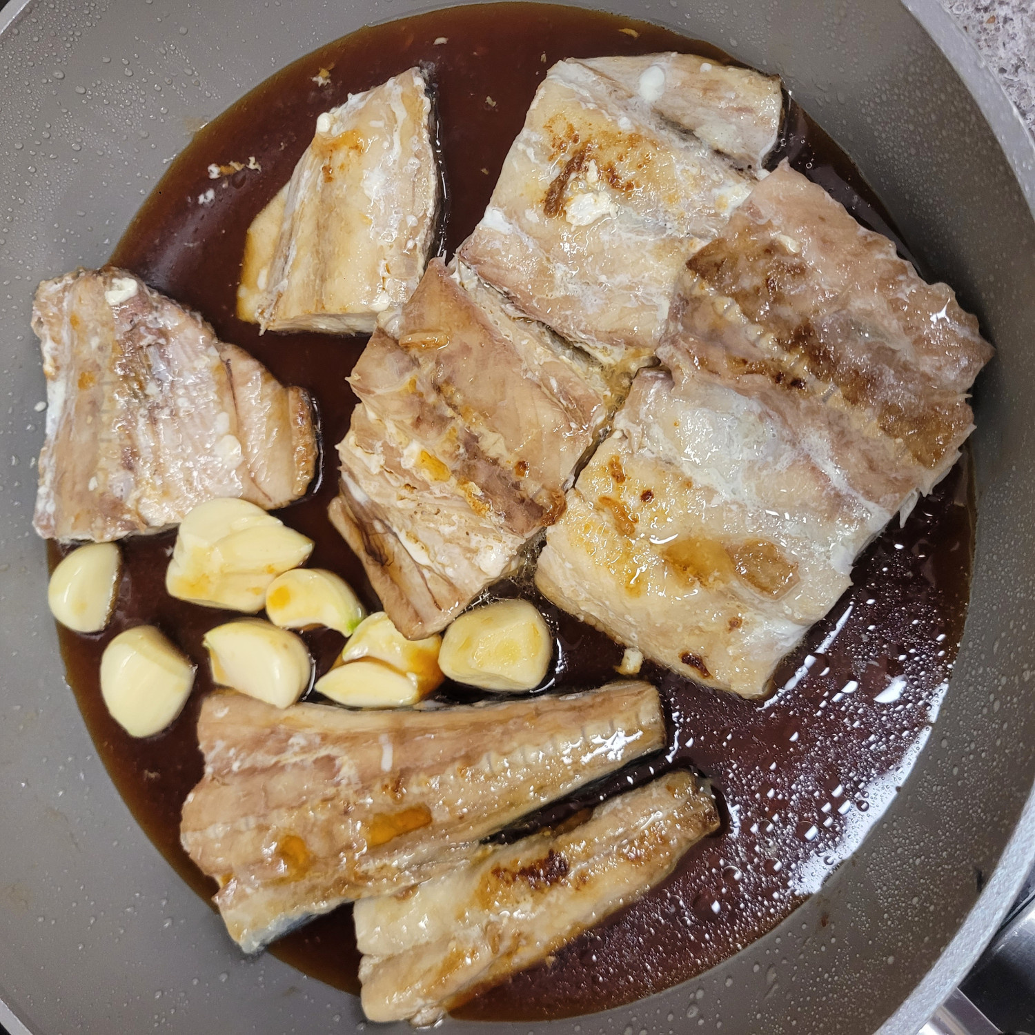조리면서 생선에 양념이 베이도록 생선 위쪽에 숟가락으로 양념을 반복적으로 뿌려줍니다