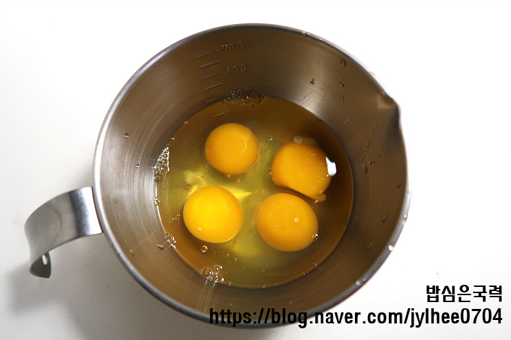 계란 4개를 준비해요.