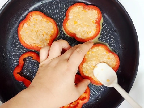 어려우시다면 파프리카 속에 밀가루(전분가루)를 묻혀주셔도 좋아요.