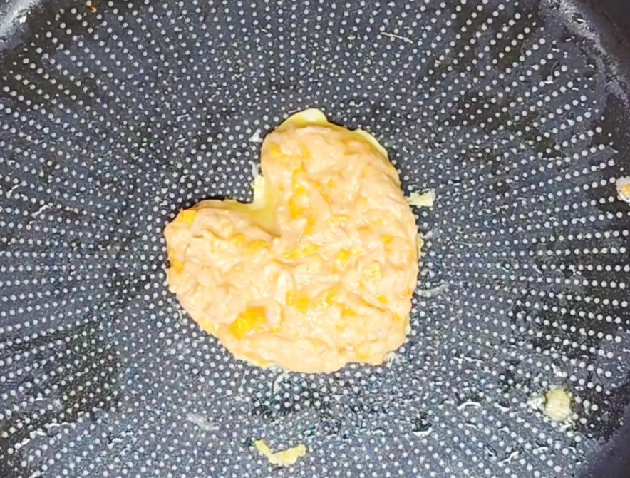 계란 물이 살짝 나온 건 그냥 두고 익힌 후에 정리하시면 깔끔하게 돼요. 많이 뒤집으시면 소가 빠질 수 있어요. 확인하시고 한 번만 뒤집어주세요.