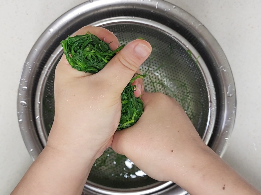 비틀어 짜거나 물기를 너무 많이 짜면 식감이 질겨진답니다.