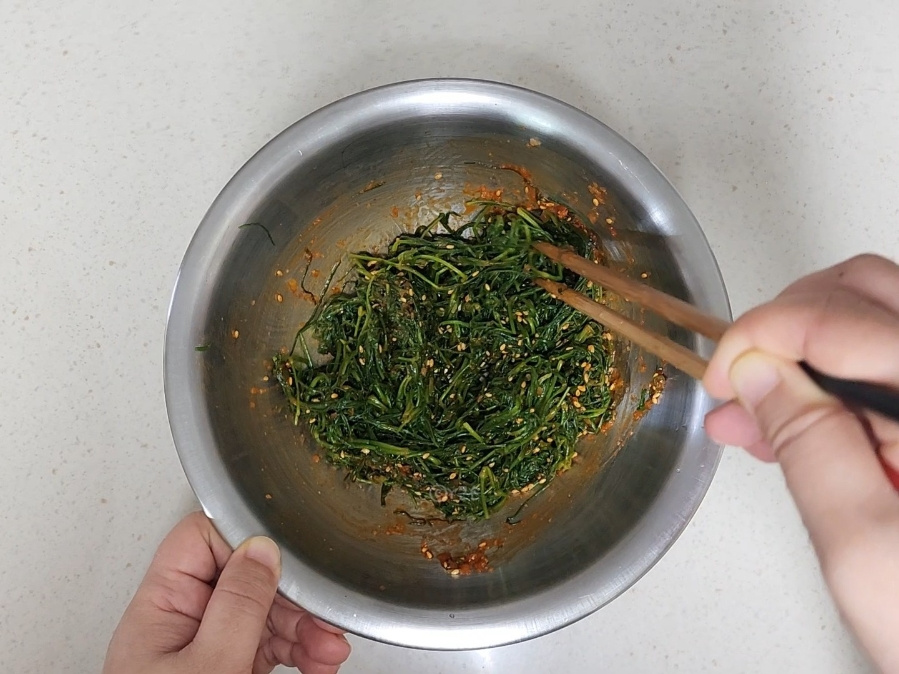 손으로 비비지 말고 무쳐도 좋고 젓가락으로 풀어주면서 무치면 됩니다.