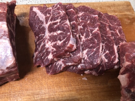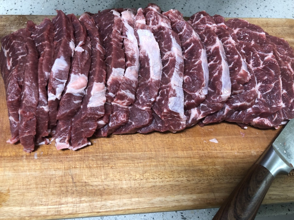 먼저 부채살원육을 근막제거 그리고 육전용 400g정도를 빼고 손질을 해줍니다.