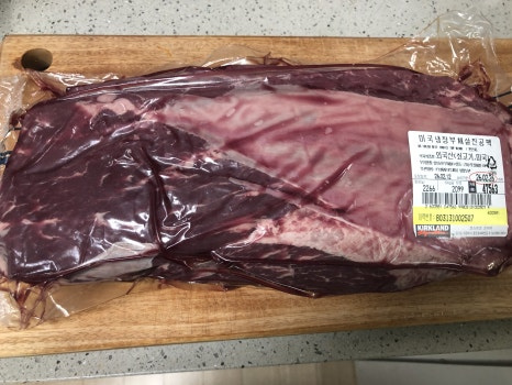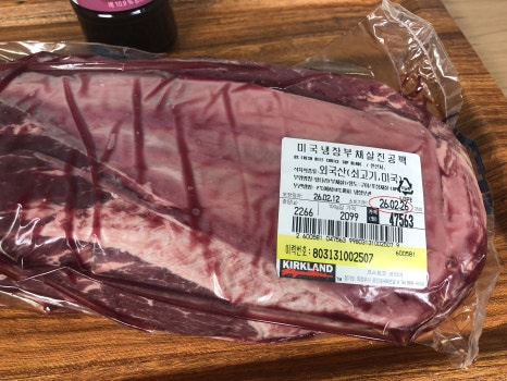 코스트코에서 부채살 원육을 사왔습니다. 100g에 2099원에 구매했습니다.