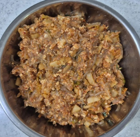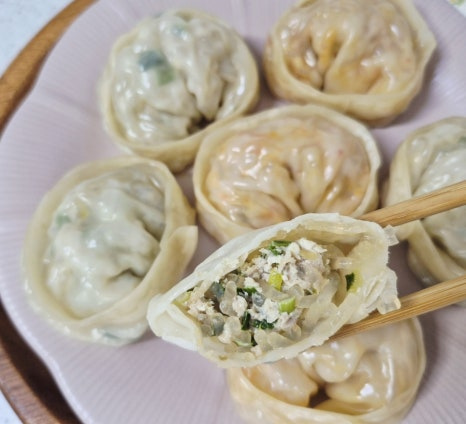 기본 만두소만 있으면 좋아하는 취향대로 고기만두나 김치만두의 개수를 조절해서 만들 수 있습니다.