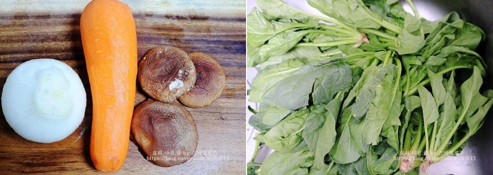 당근 양파 시금치는 깨끗하게 씻어 건지고