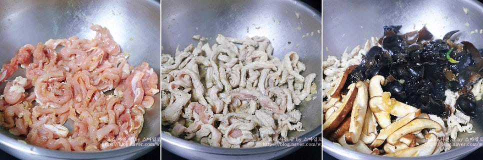 표고버섯과 목이버섯을 넣어 볶아줍니다