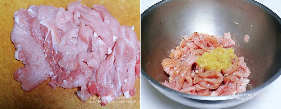 돼지고기는 키친타월에 올려 핏물 제거 후 다진 마늘 1큰술과