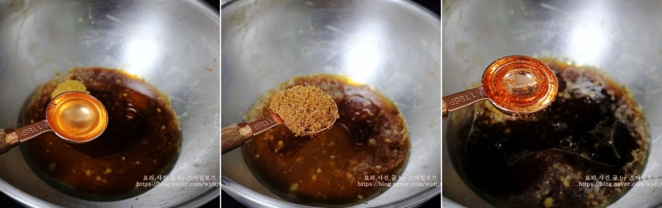 맛술 1큰술, 흑설탕 2큰술 물엿 1큰술을 넣고