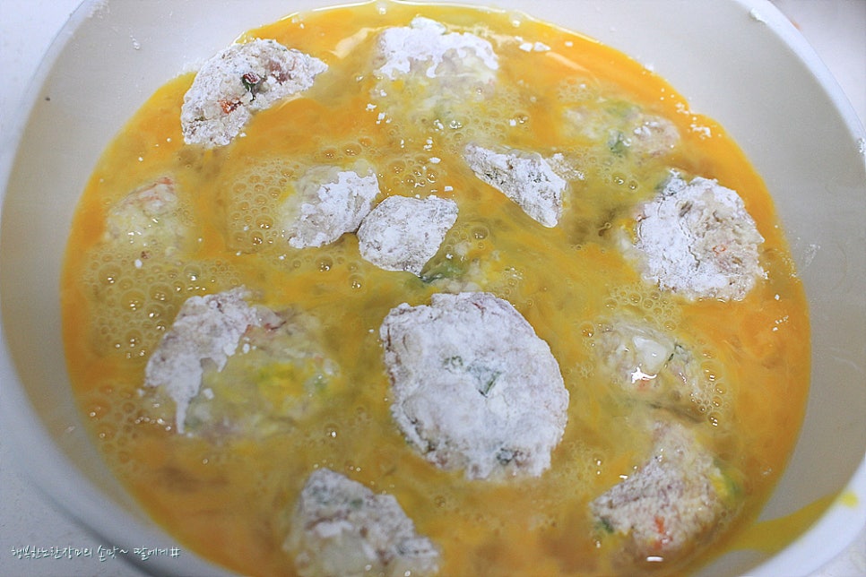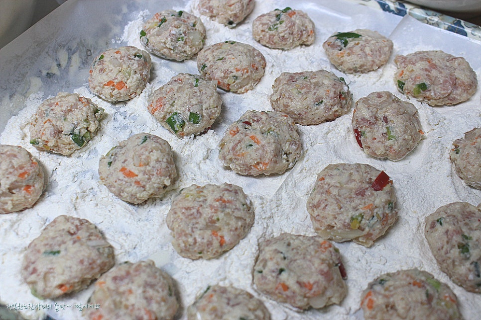 동그랑땡 반죽 밀가루 탁탁 털어서 퐁당~