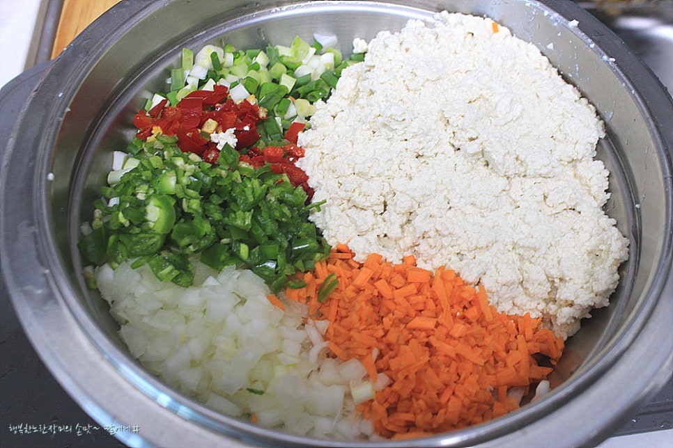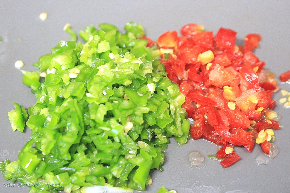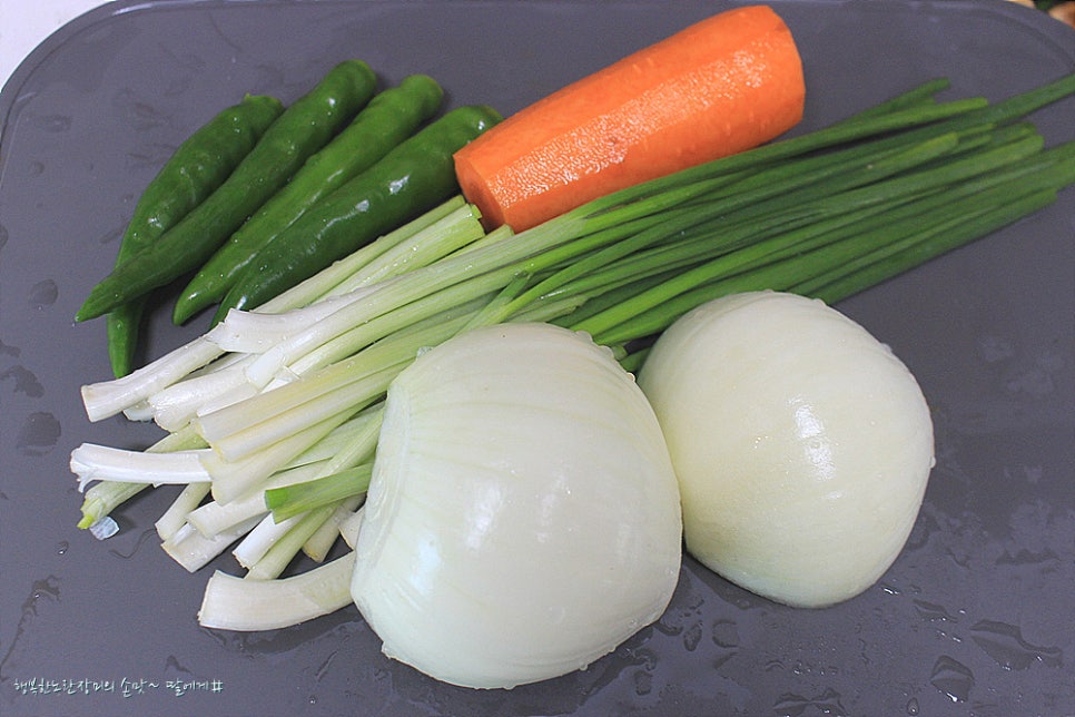 재료 사진에 빠졌는데 다진마늘,홍고추도 들어갑니다.
