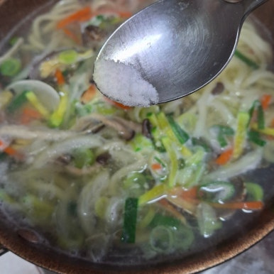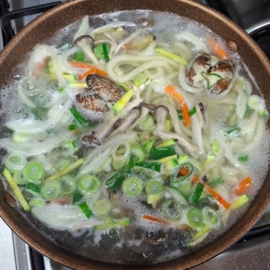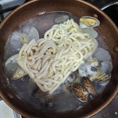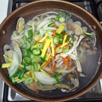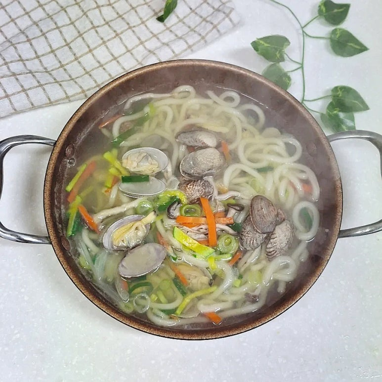 바지락을 넣어 해물우동을