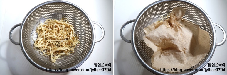 찬물에 한 번 헹군 뒤 체에 밭쳐