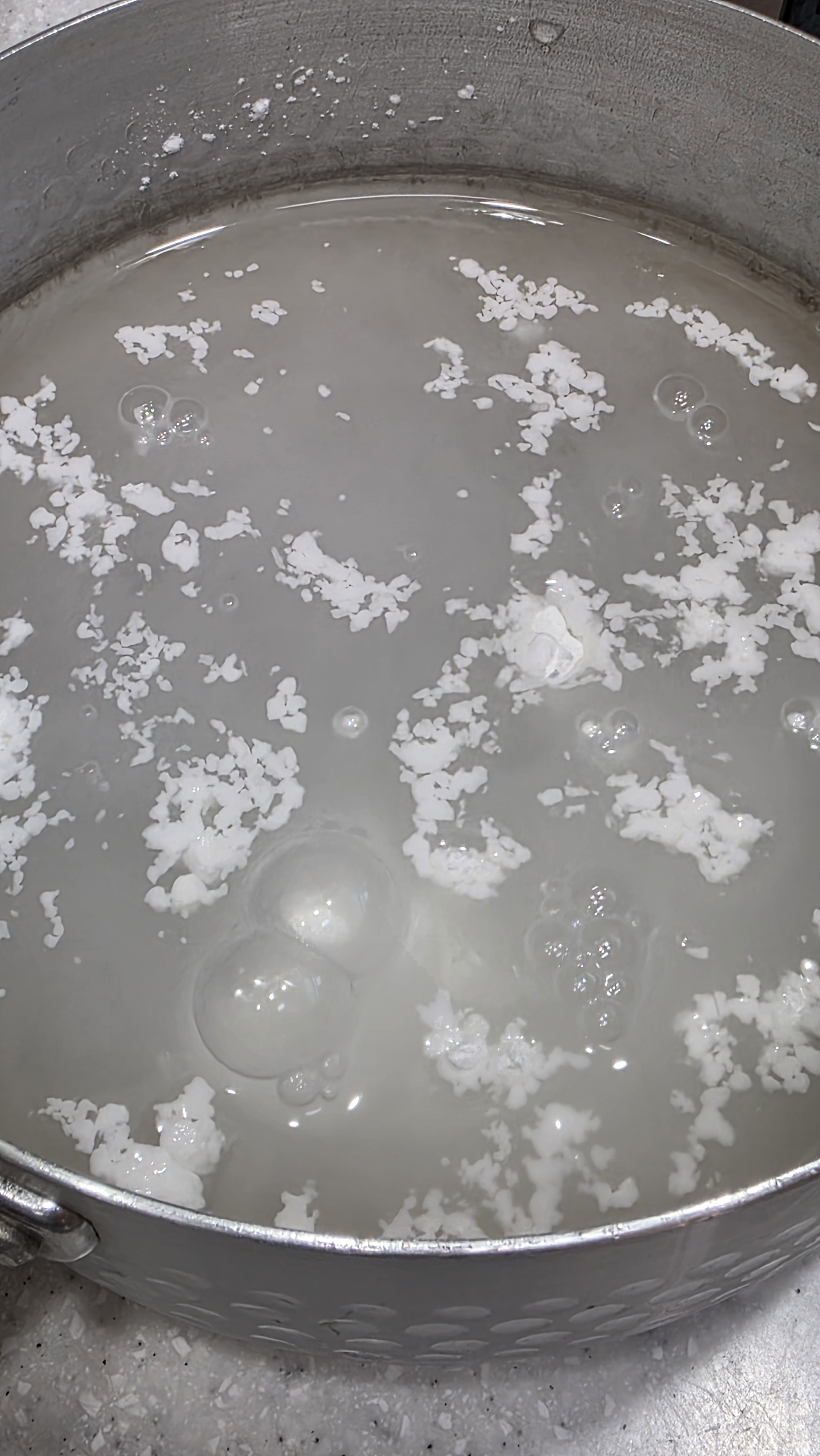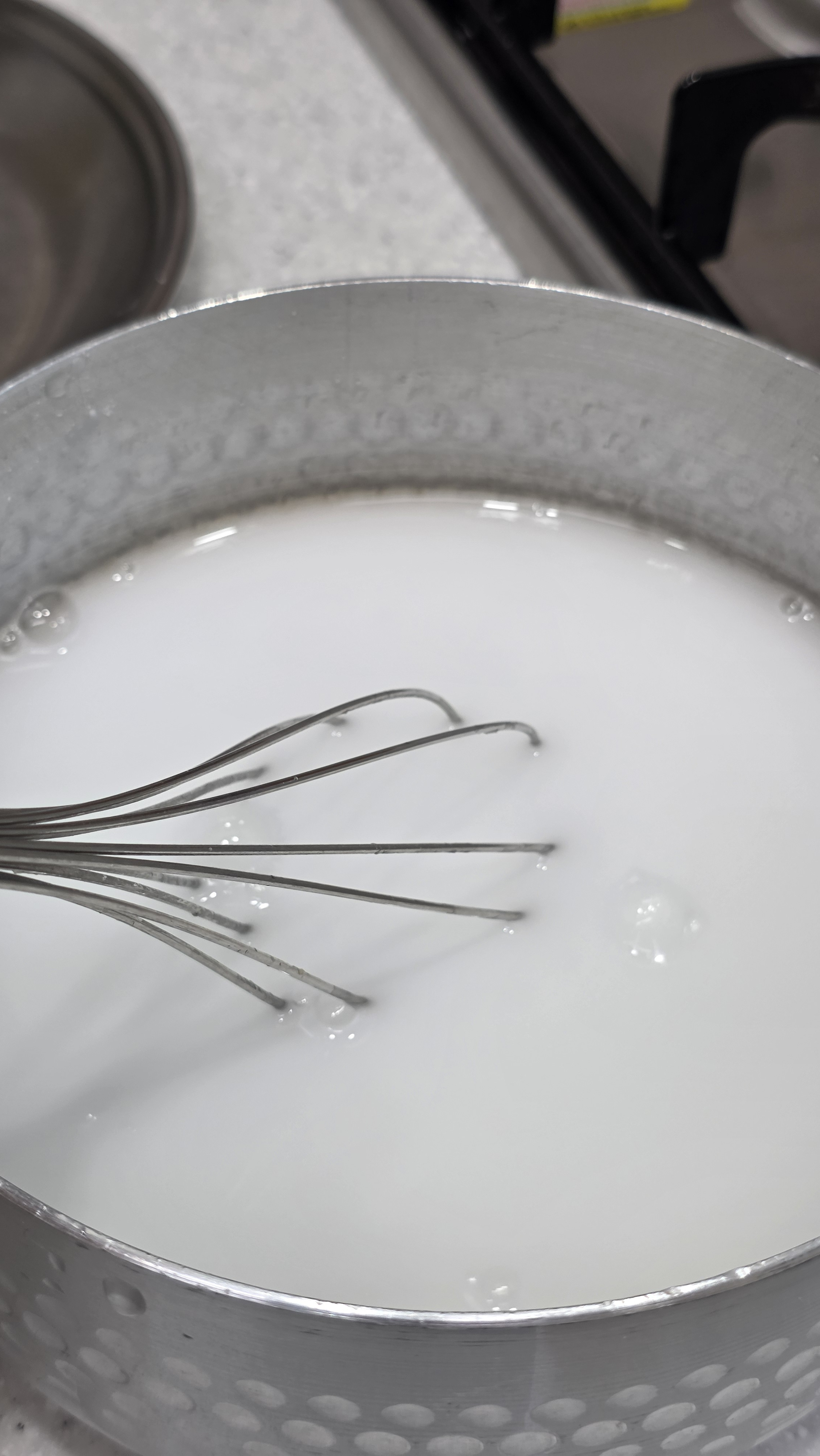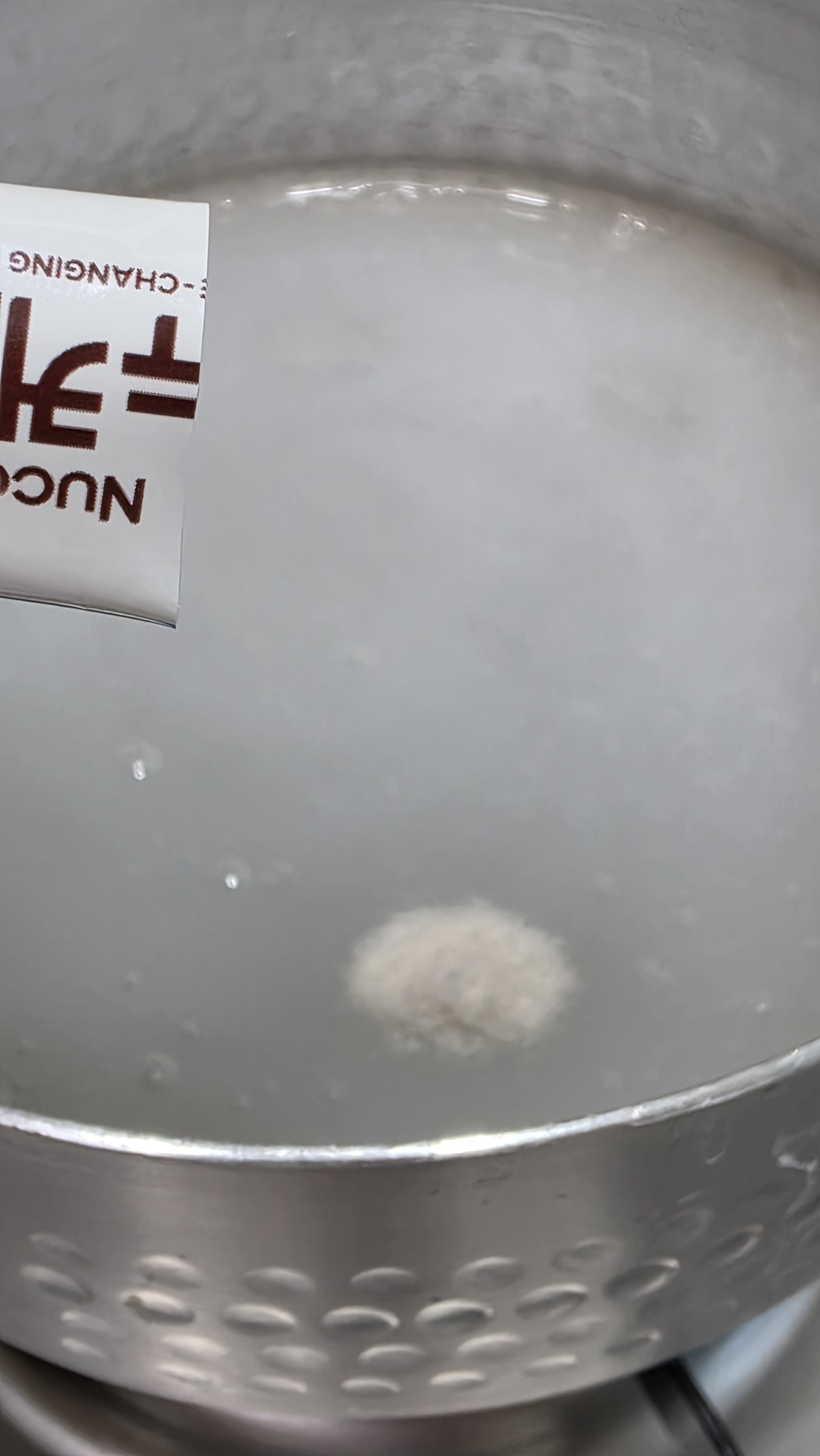 뉴케어 0.9g을 넣는다.(형태를 유지하고 부트럽게 풀리는게 목표라 1g을 넘지 않았다.)