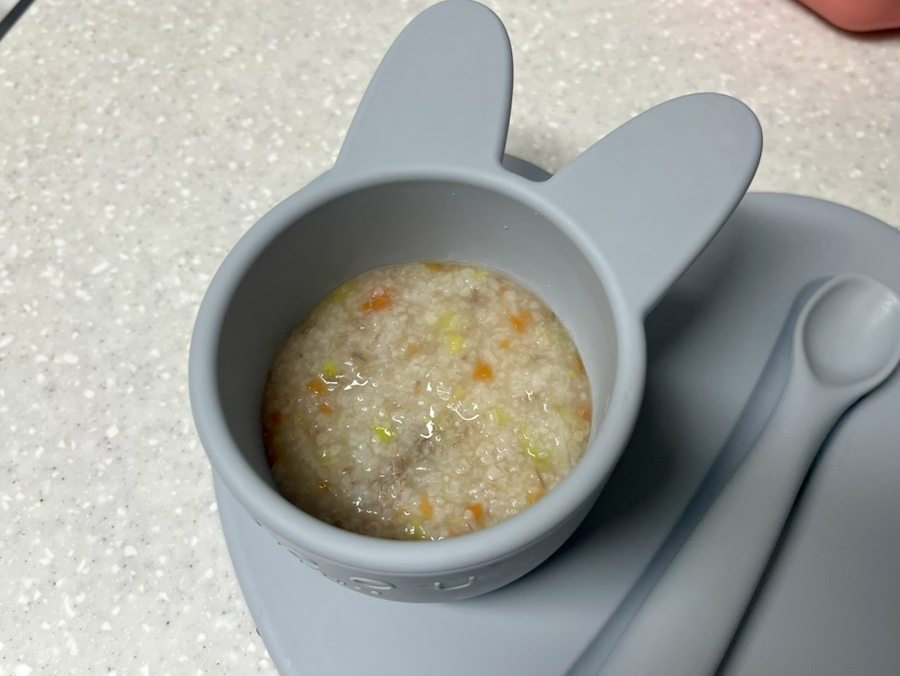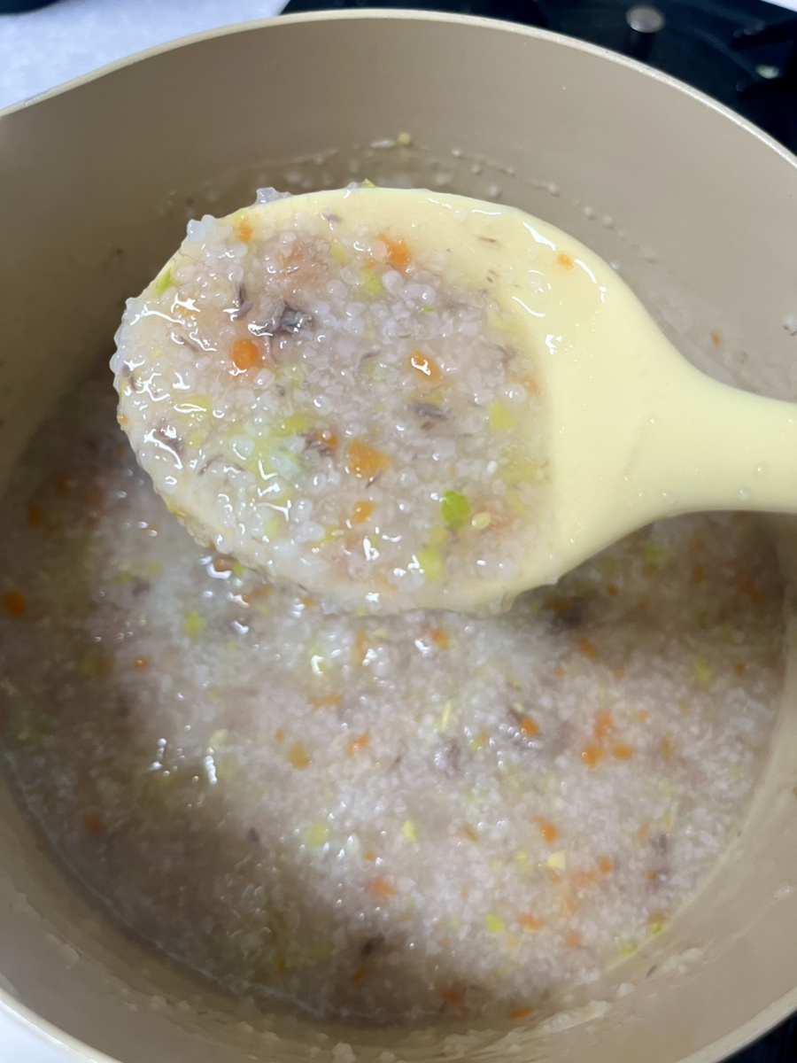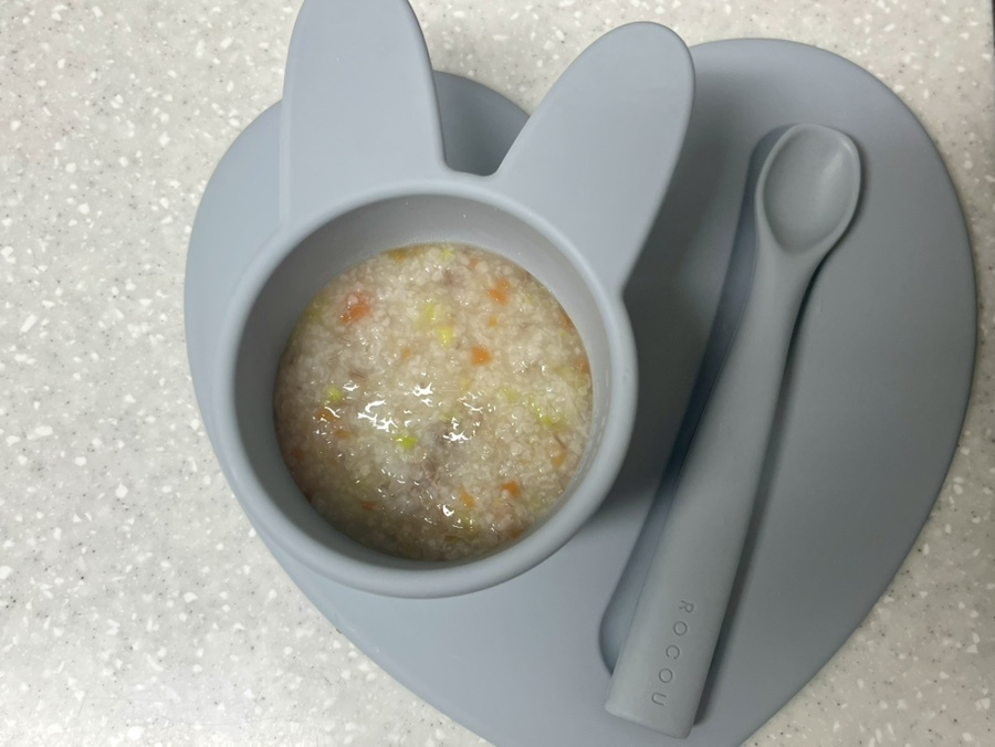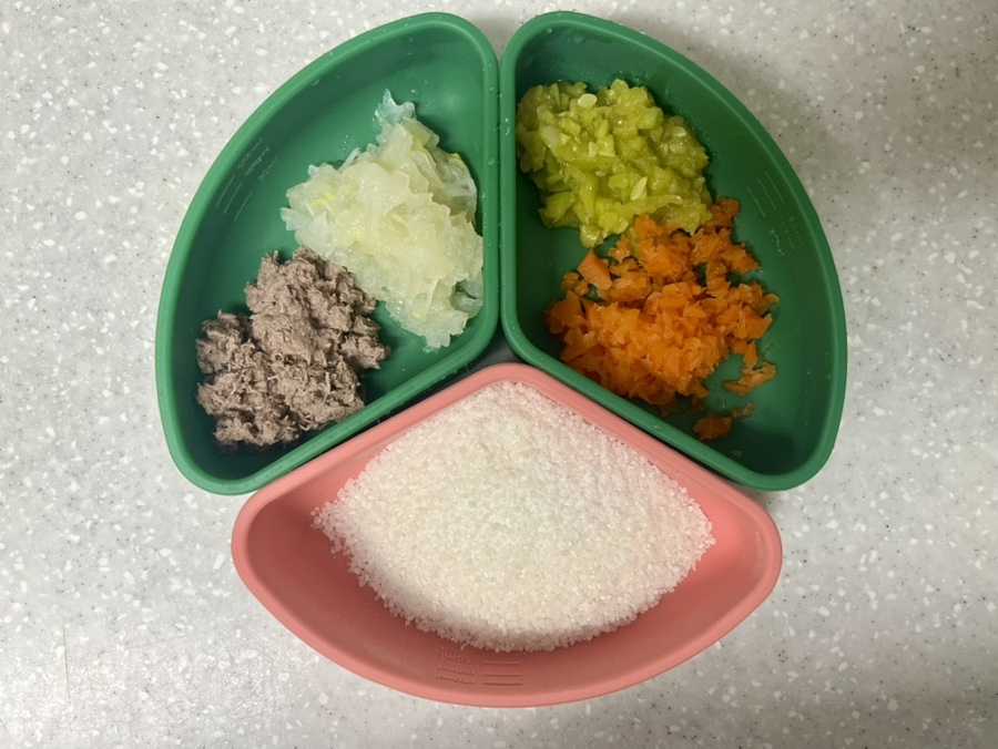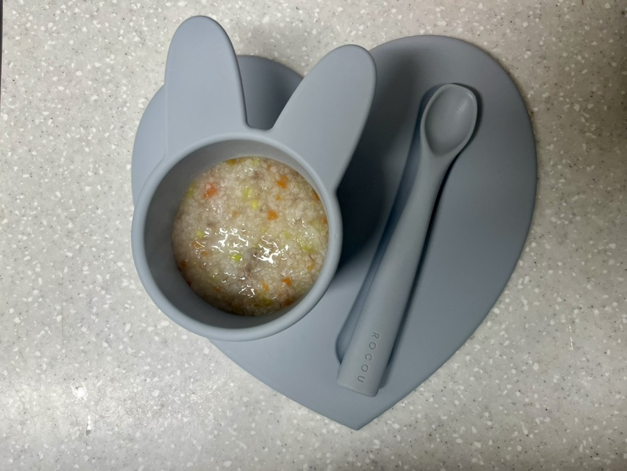 중기쌀가루 50 g , 소고기 15 g , 양파 15 g , 애호박 15 g , 당근 15 g , 물 500 ml