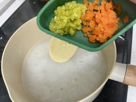 쌀가루와 야채가 잘 섞이도록 저어주세요.