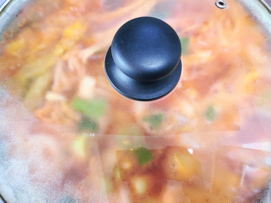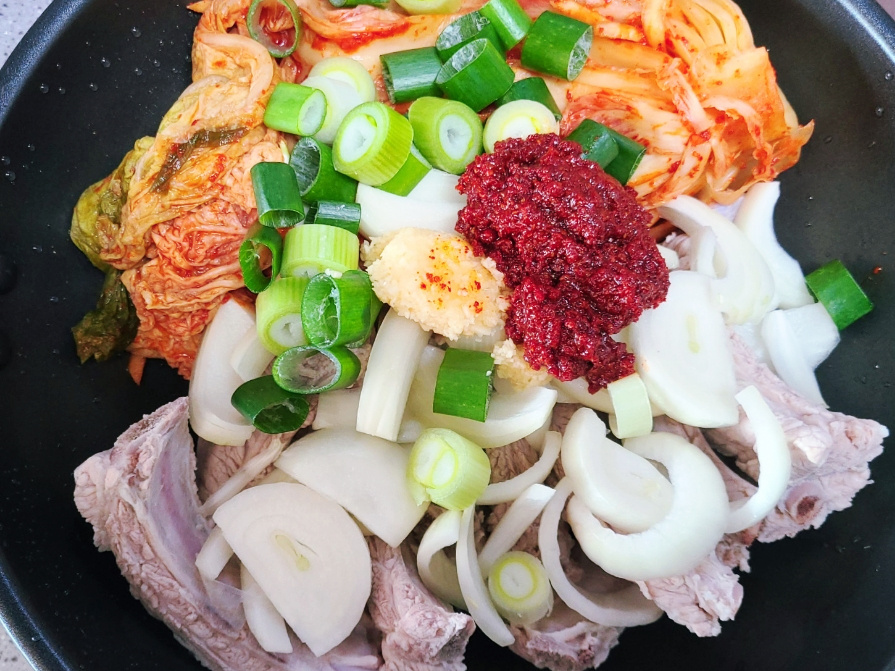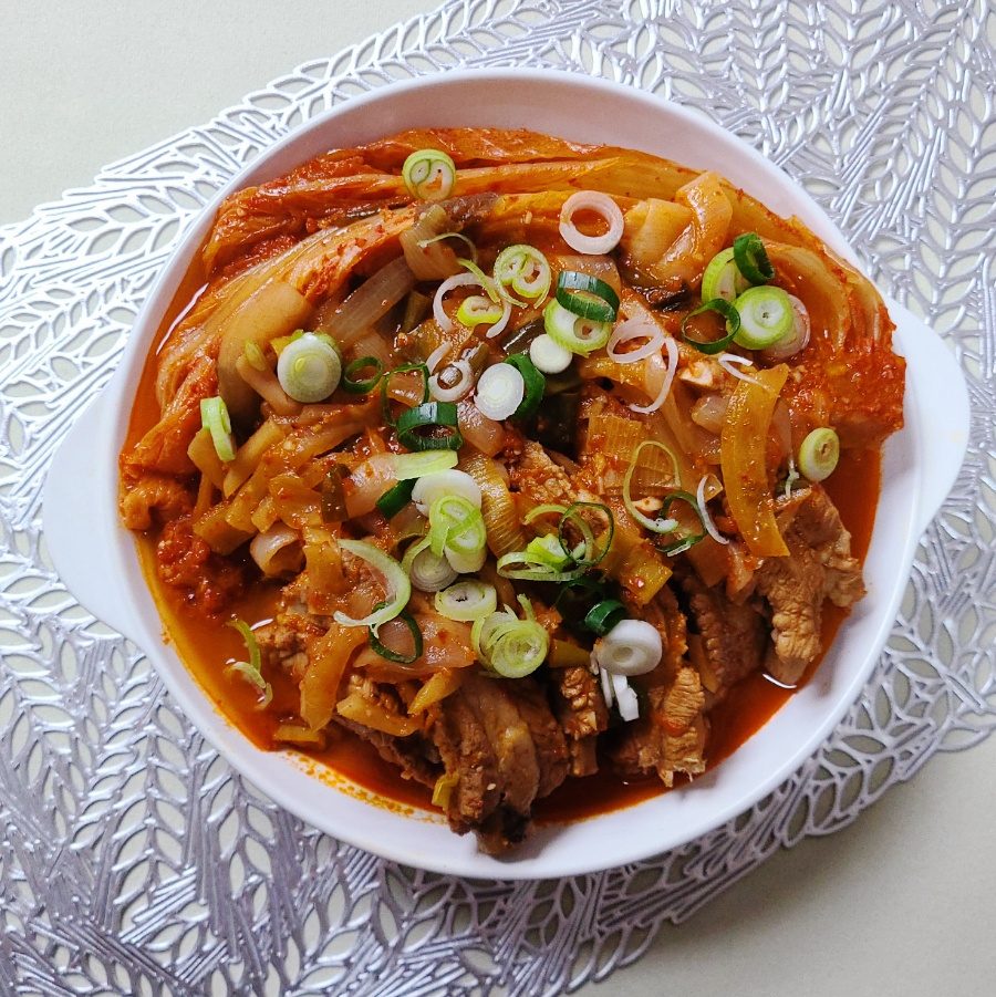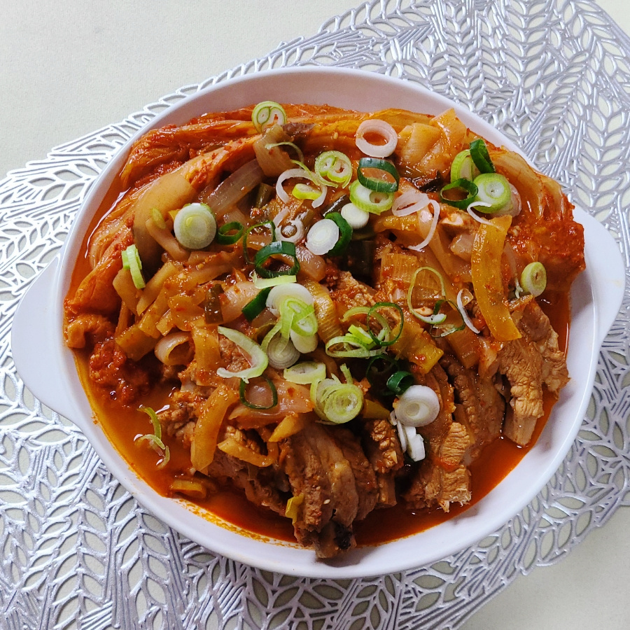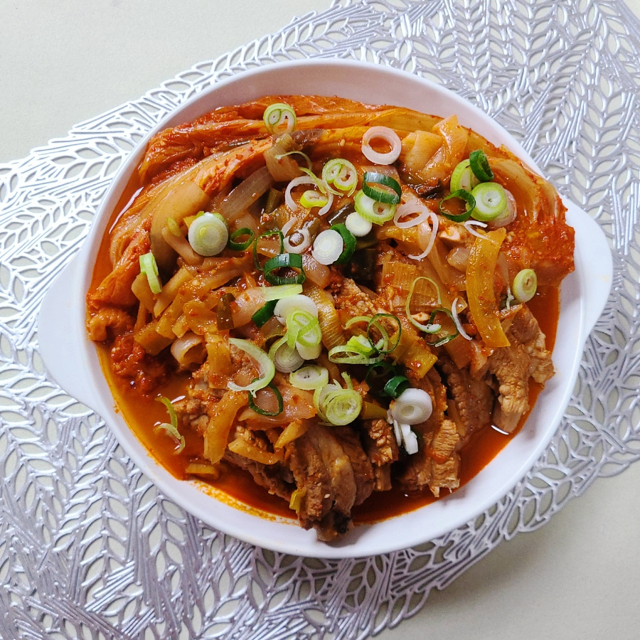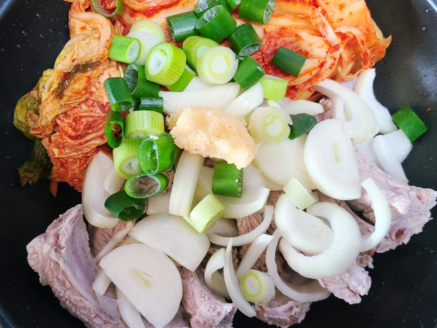(돼지고기 김치찜을 만들 경우에는 최소 30분 이상 끓여주어야 고기와 김치 모두 부드럽게 익을 수 있어요)