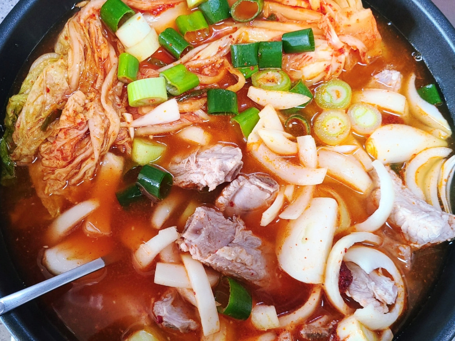 시간이 경과 후 등갈비찜 김치찜을 확인하고 국물이 부족하다면 물을 추가하여 끓여주고, 싱겁게 느껴지면 입맛에 맞게 간을 조절하고 마무리를 하면 돼지고기 김치찜 등갈비찜 완성입니다.