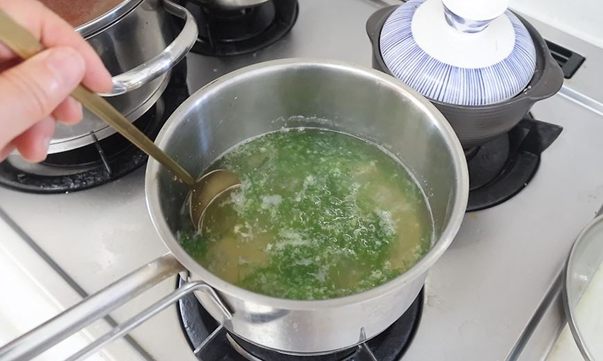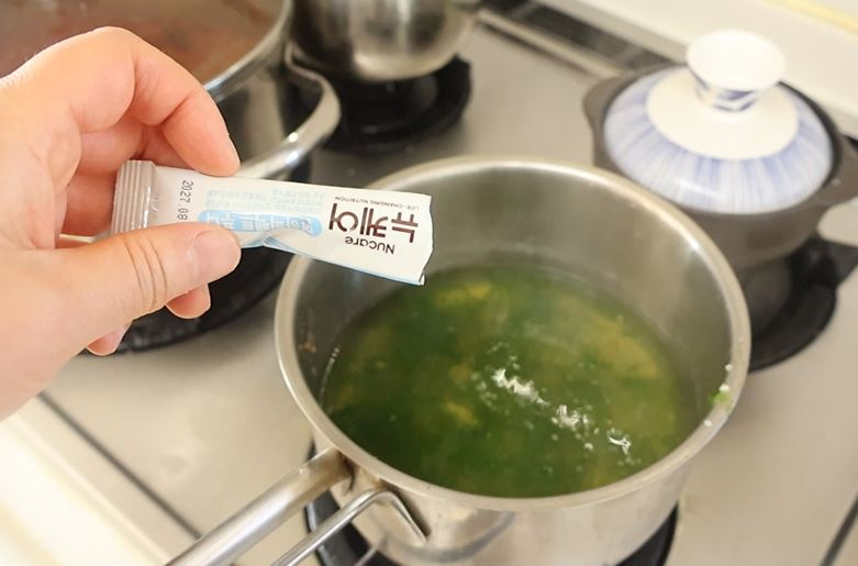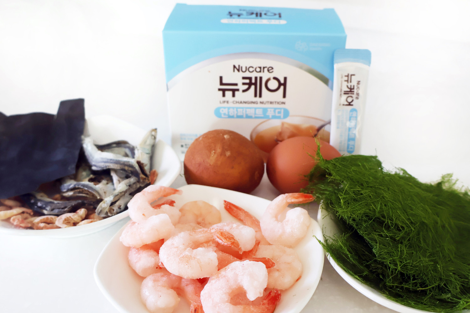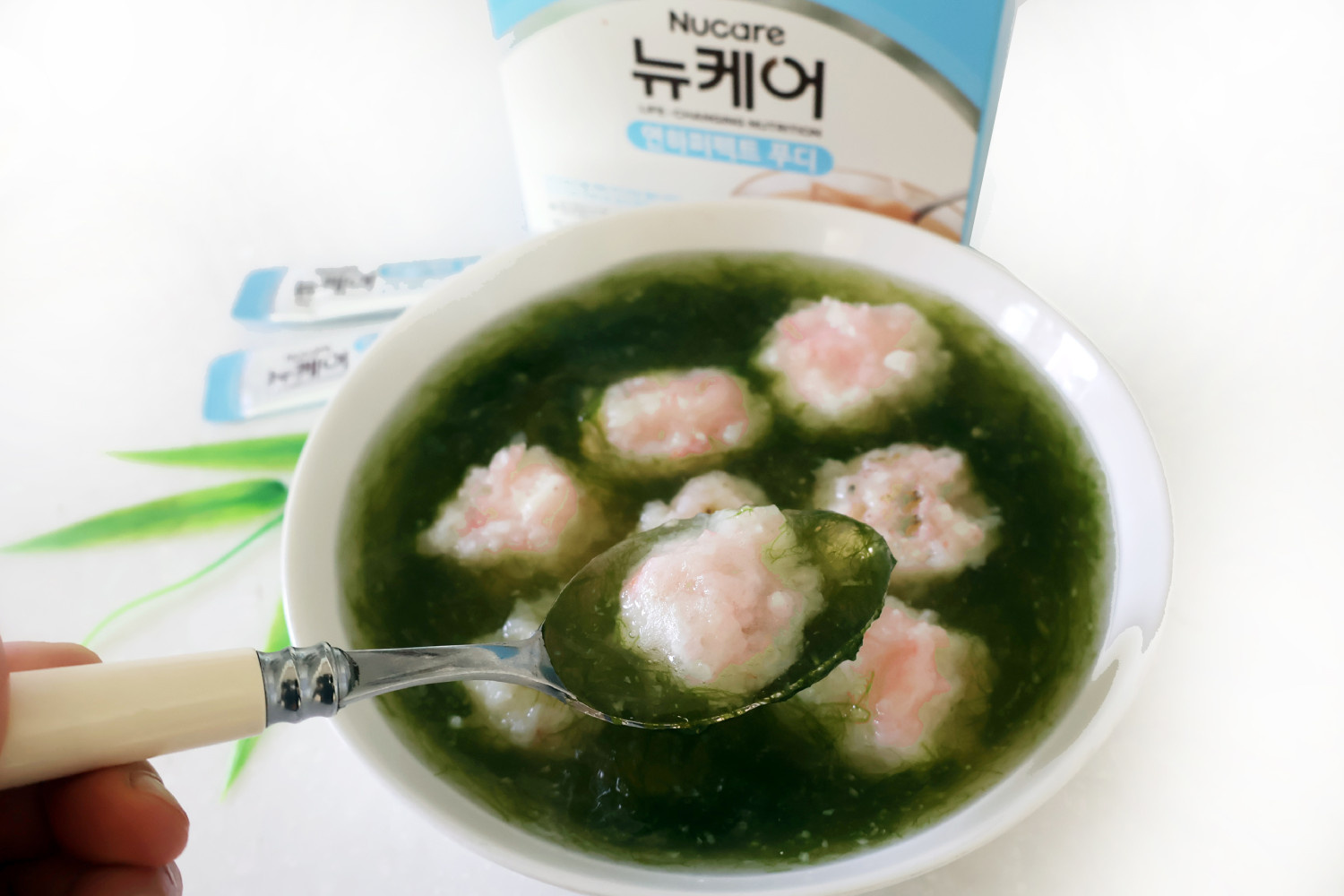 감태를 넣고 끓여줍니다.여기에 뉴케어 연하퍼펙트 푸디 한포를 넣고 잘 저어주세요
