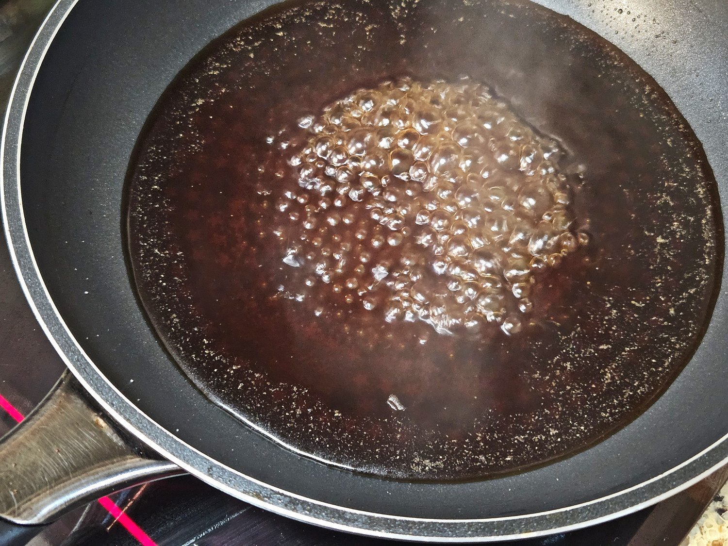 고기 볶았던 팬에 진간장 5큰술, 물 2컵, 설탕 2큰술, 굴소스 1큰술, 후춧가루 톡톡톡 넣고 불을 올려줍니다.