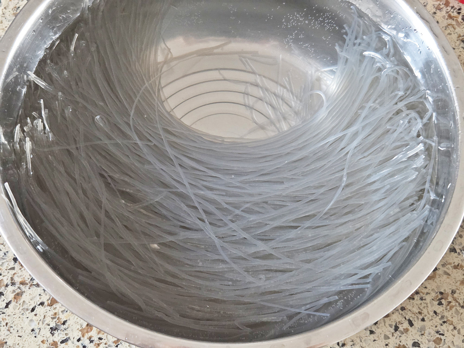 먼저 당면은 미지근한 물에 30분 이상 담가둡니다.