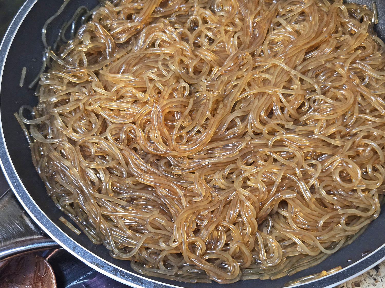 끓기 시작하면 중불로 줄인 다음 불려둔 당면을 넣고 골고루 잘 섞어가며 졸여주세요.