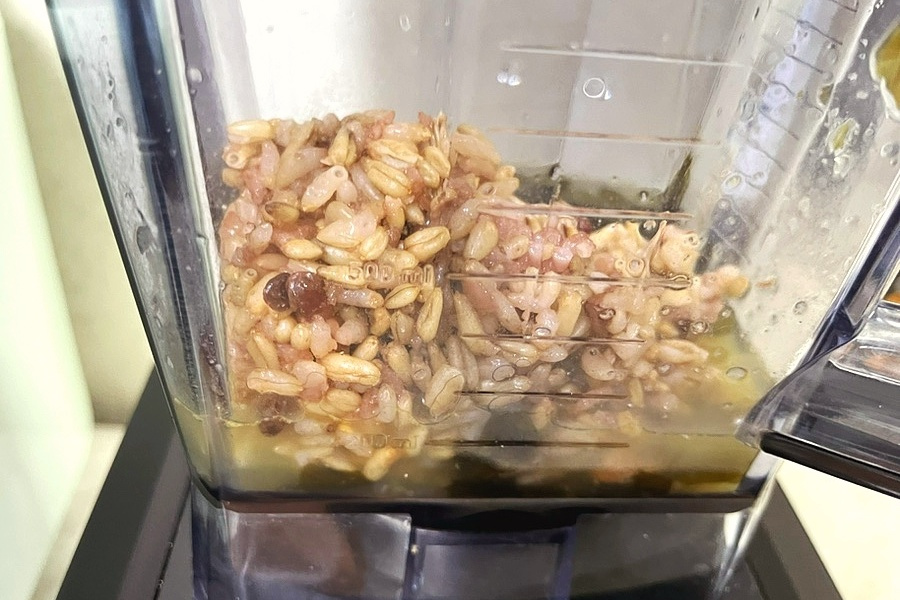 미역국 반그릇과 밥 반공기 믹서기에 곱게 갈아줍니다.