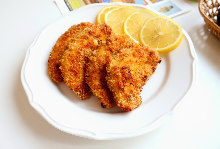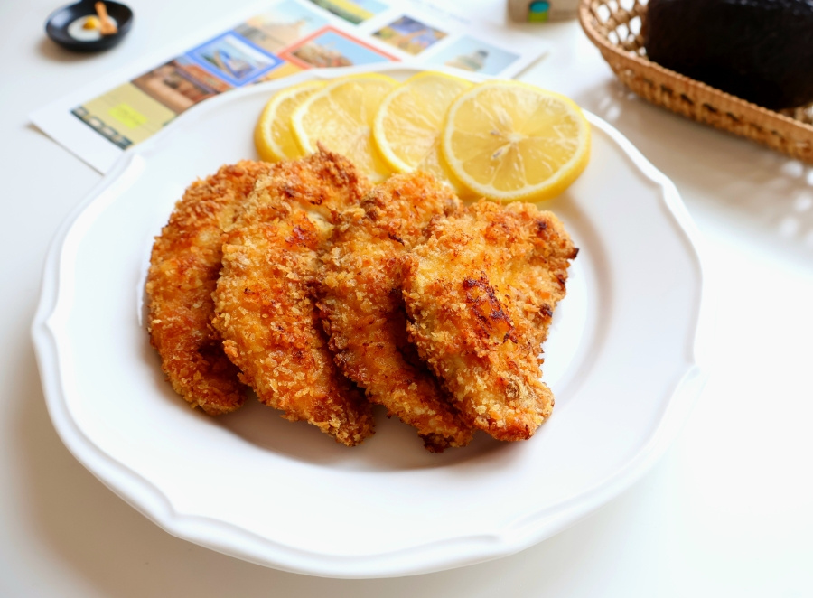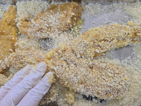 - 닭 안심 300g 튀김가루 3 달걀 2개 빵가루 1컵 정도 올리브유 넉넉히 , 케이준 : 고형 카레 1조각 우유 or 물 3 파프리카 가루 1(고춧가루 0.5) 후춧가루 약간 , 계량 : 밥숟가락 계량컵