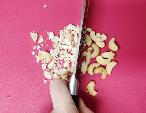 캐슈넛 한 줌을 칼로 잘게 다져주세요.