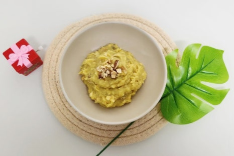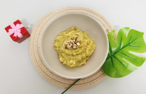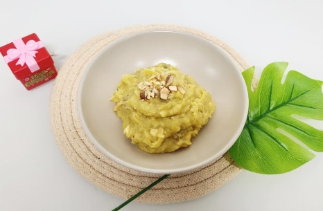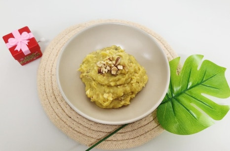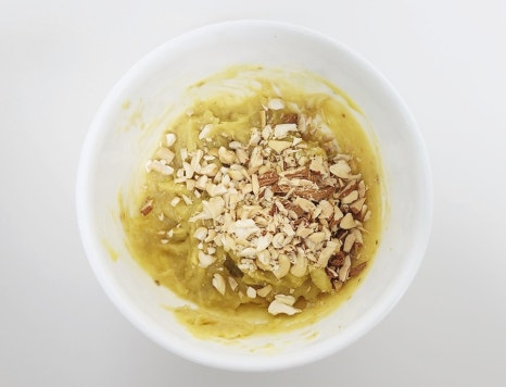 다진 견과류를 고구마무스에 넣고 골고루 섞어 주세요. 이때 아몬드를 조금만 남겨놔 주세요.